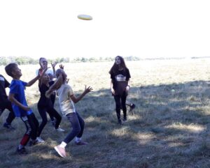 Először frizbiztünk, utána számháborúztunk az erdőben, majd röplabdáztunk, botfociztunk és végül fociztunk. Az osztály minden játéknál 2 csapatra volt osztva. Az egyik csapat a lila mezesek, a másik csapat a mez nélküliek voltak. Én a mez nélküli csapatba tartoztam. A játékok közül nekem a botfoci volt az újdonság. A számháborút már ismertem, de még sohasem játszottam. Ez a játék volt nekem a legérdekesebb. Minden gyerek fején elhelyeztek egy négyjegyű számot, amit a másik gyereknek le kellett olvasnia. Ha valakiét leolvasták, az kiesett a játékból. A fák mögé jól el lehetett bújni, hogy a másik ne lássa a számokat. Az én számom a 6969 volt, amit senki sem olvasott le. Igaz én sem tudtam más számát leolvasni, de a többiek igen és így mi győztünk. A csapatunk nyert még a fociban és a frizbiben is. Gyengébbnek bizonyultunk a röplabdában és a botfociban is, de összességében mi nyertünk. Miután minden játékot lejátszottunk visszasétáltunk az iskolába.