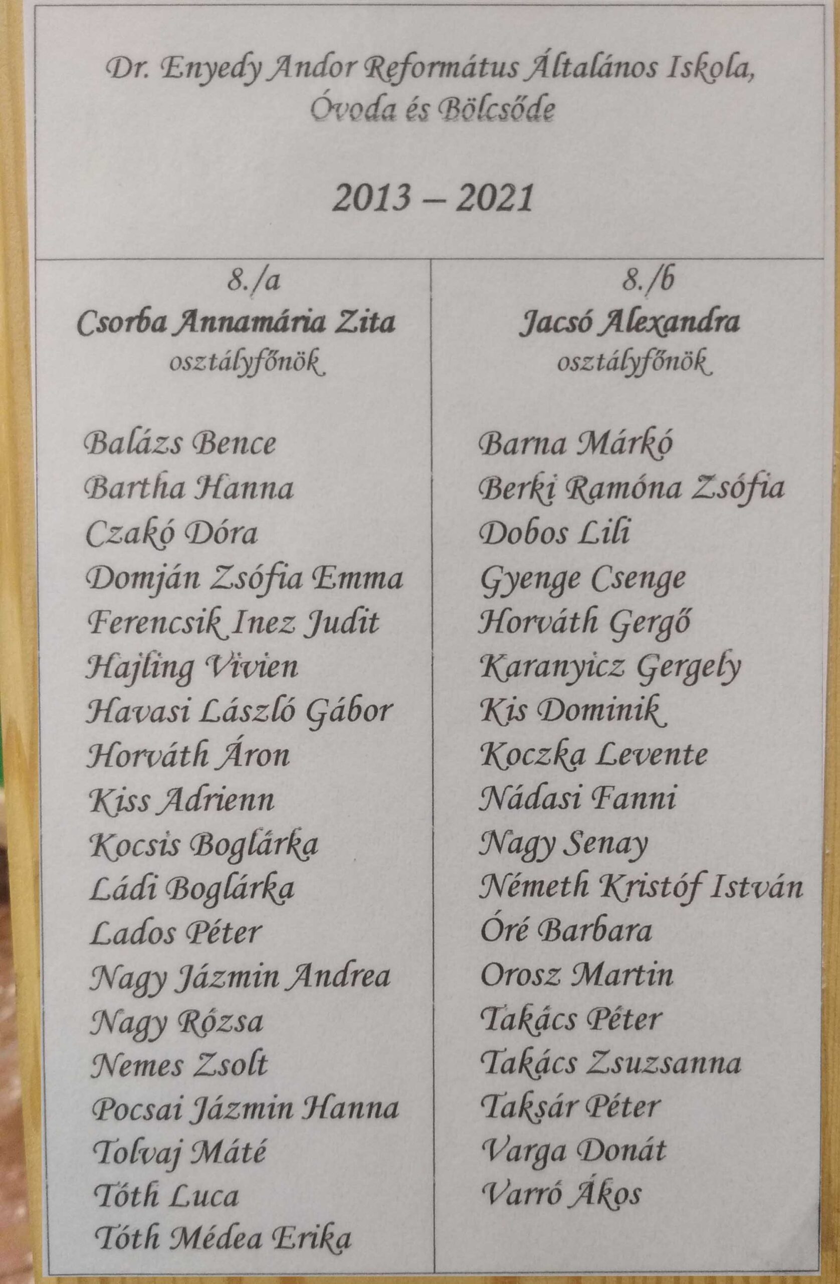 2013 - 2021 8.a. tablo