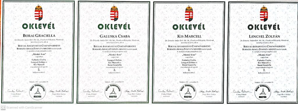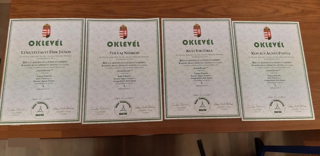 Szép eredmények születtek a Bolyai csapatverseny megyei fordulóján! Ezúttal magyar nyelvből volt a megmérettetés. A csapataink közül négy is bekerült a legjobb hat közé!